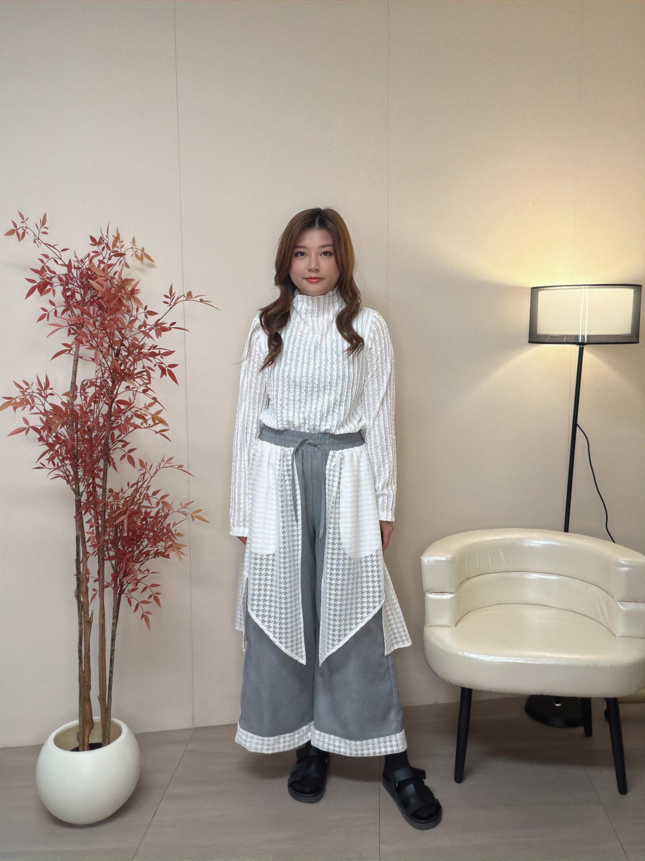 103699 BS519 兩件套效果闊褲 壓接底拼花邊蕾絲