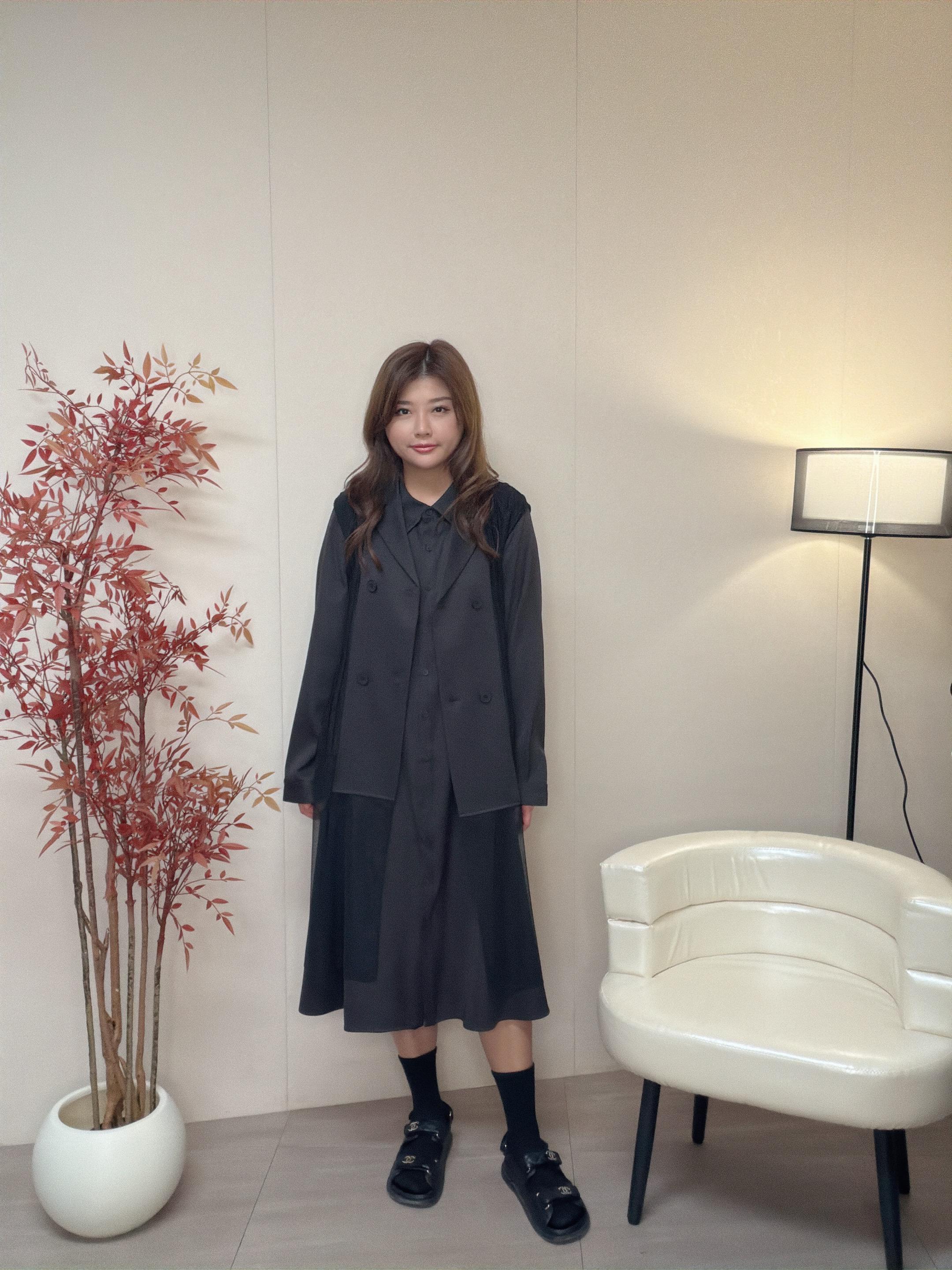 Model身高:162cm Free size 外套:胸48 長39 腰50 內裙: 胸42 長43 腰44 可分拆兩件套套裝 外套條紋織花針織布拼雪紡及梭織布 內裙 全用了梳織布 因每個人測量方式及位置略有不同,尺寸皆為水平手工測量,會因布料彈性、測量起點等因素,與實際商品尺寸略有誤差,誤差尺寸±2cm為國際驗貨標準可接受範圍。 商品在不同的燈光條件或螢幕顯示下,可能會出現顏色上的輕微差異。我們已努力在拍攝和編輯過程中呈現準確的顏色,但由於每個人的螢幕設定和顯示效果不同,實際顏色可能會有所變化。為了更準確地判斷顏色,我們建議參考我們提供的多角度照片。如您對色差有疑慮,請謹慎下單以確保符合您的期望。 付款前請先向客服查詢存貨 完成付款代表接受訂貨三星期及同意所述之退換貨政策。