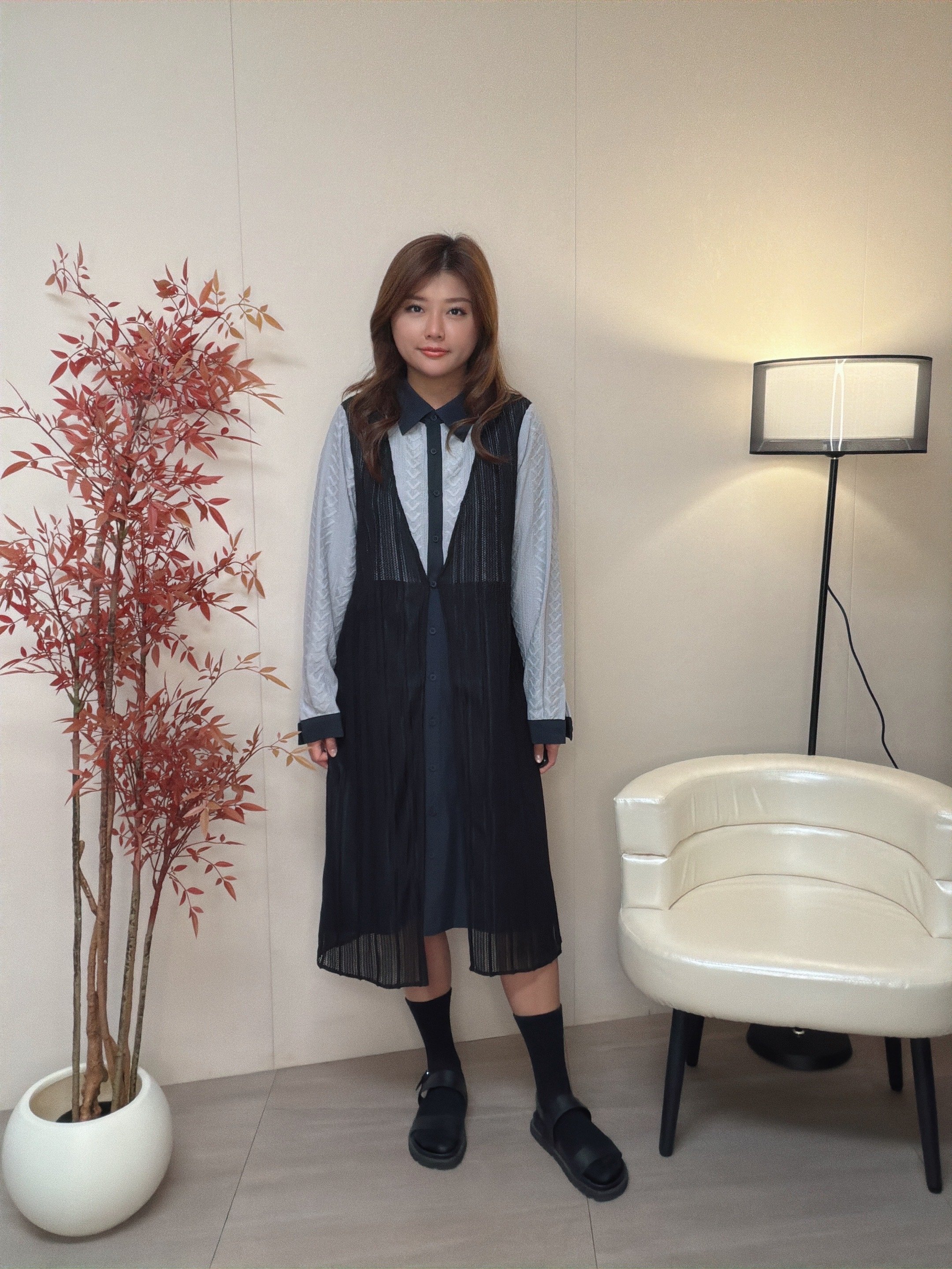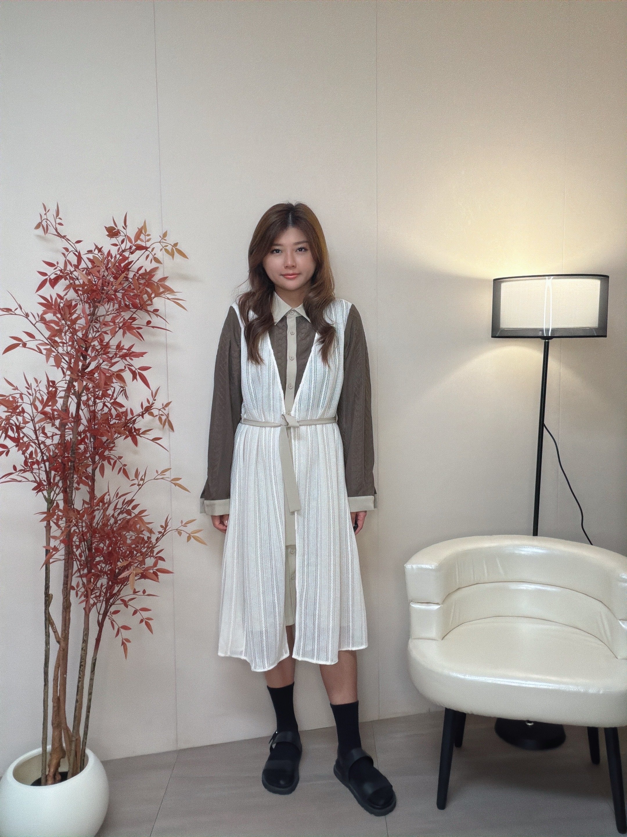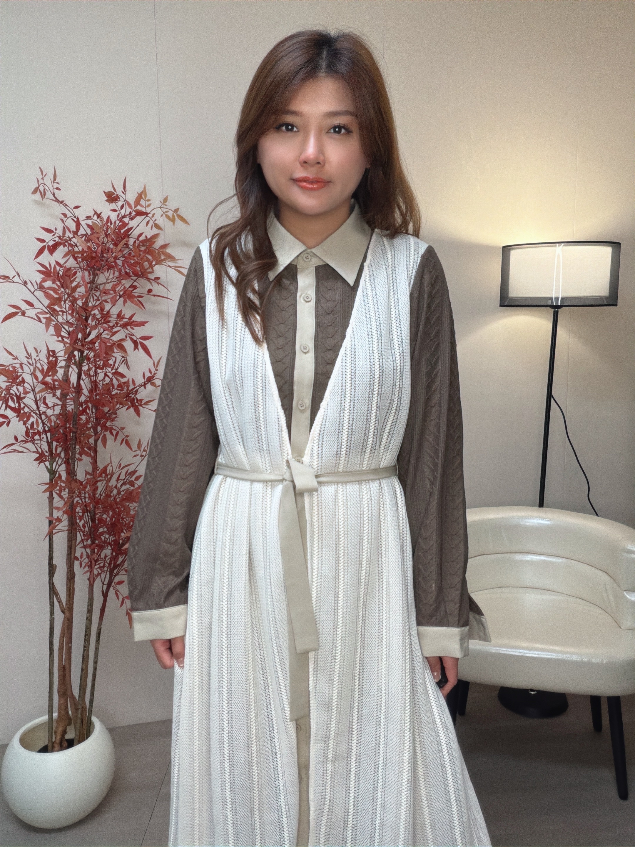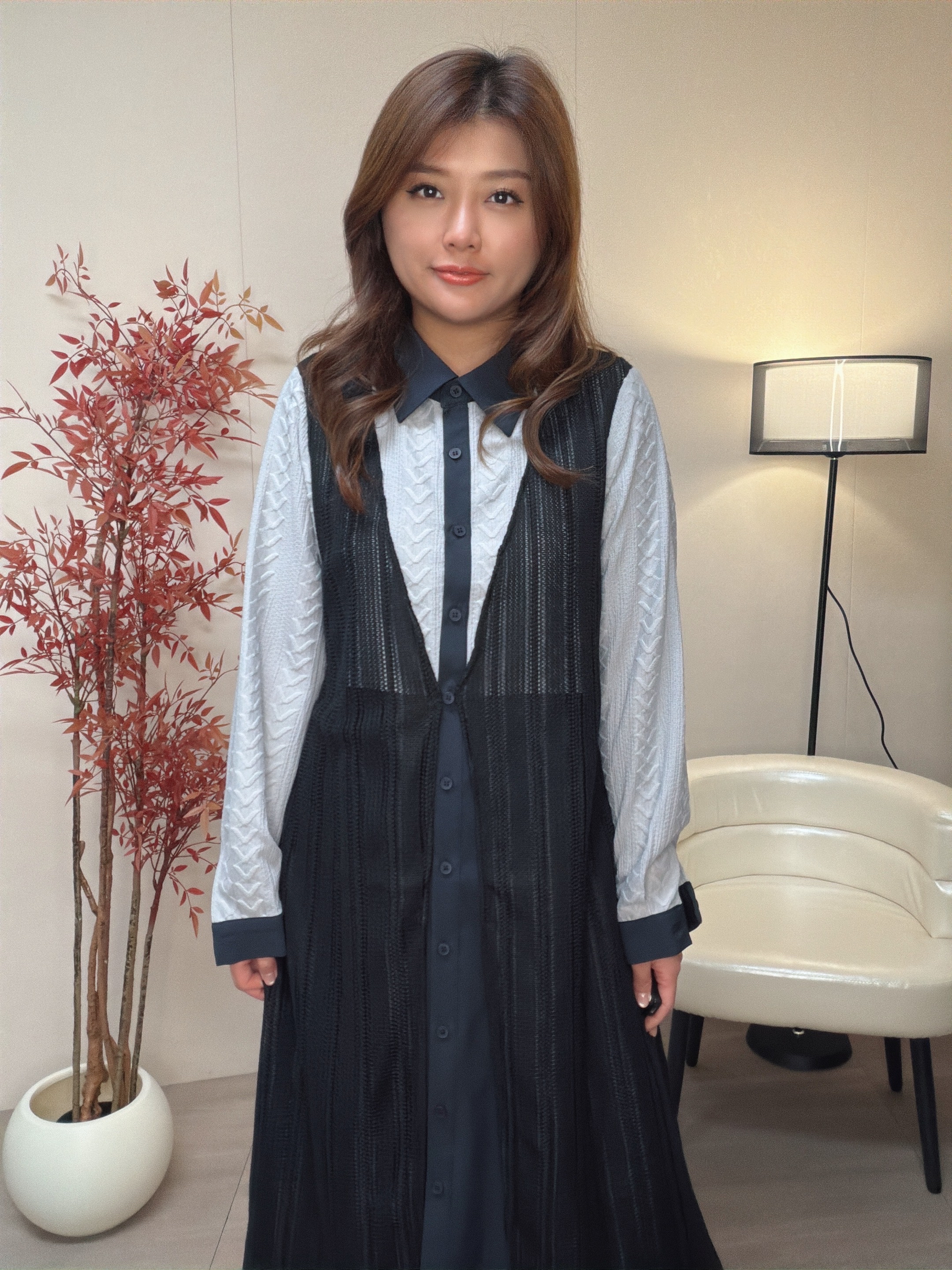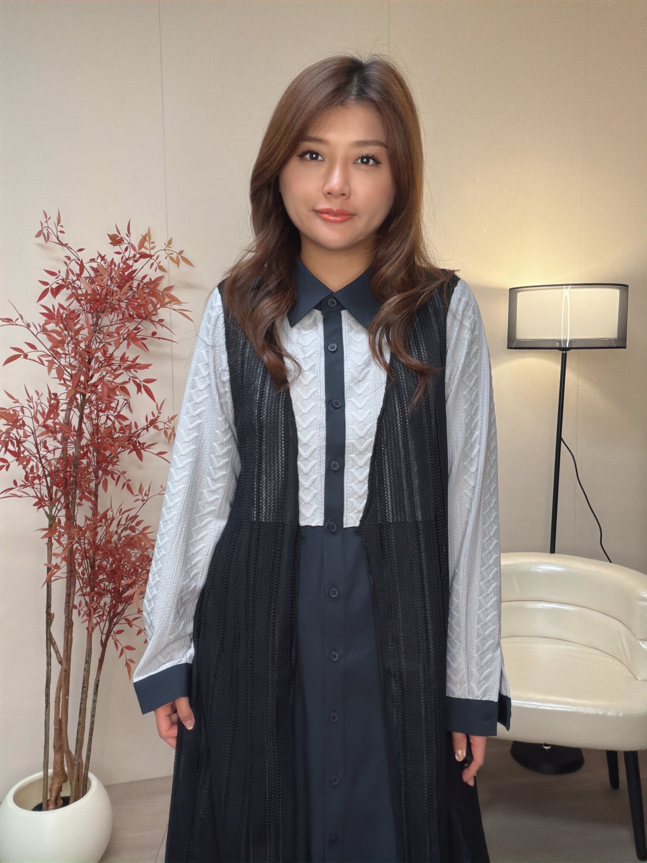 假兩件效果 假外背心運用了條紋針織布 中間位可以扣返內裙鈕扣作一件套款式穿著 增加層次感 。內層運用兩種不同布料 面部是v紋提花梳織布與內層做撞色布作設計細節 Model身高:162cm Free size 胸41腰46 hip 48 長 42 因每個人測量方式及位置略有不同,尺寸皆為水平手工測量,會因布料彈性、測量起點等因素,與實際商品尺寸略有誤差,誤差尺寸±2cm為國際驗貨標準可接受範圍。 商品在不同的燈光條件或螢幕顯示下,可能會出現顏色上的輕微差異。我們已努力在拍攝和編輯過程中呈現準確的顏色,但由於每個人的螢幕設定和顯示效果不同,實際顏色可能會有所變化。為了更準確地判斷顏色,我們建議參考我們提供的多角度照片。如您對色差有疑慮,請謹慎下單以確保符合您的期望。 付款前請先向客服查詢存貨 完成付款代表接受訂貨三星期及同意所述之退換貨政策。