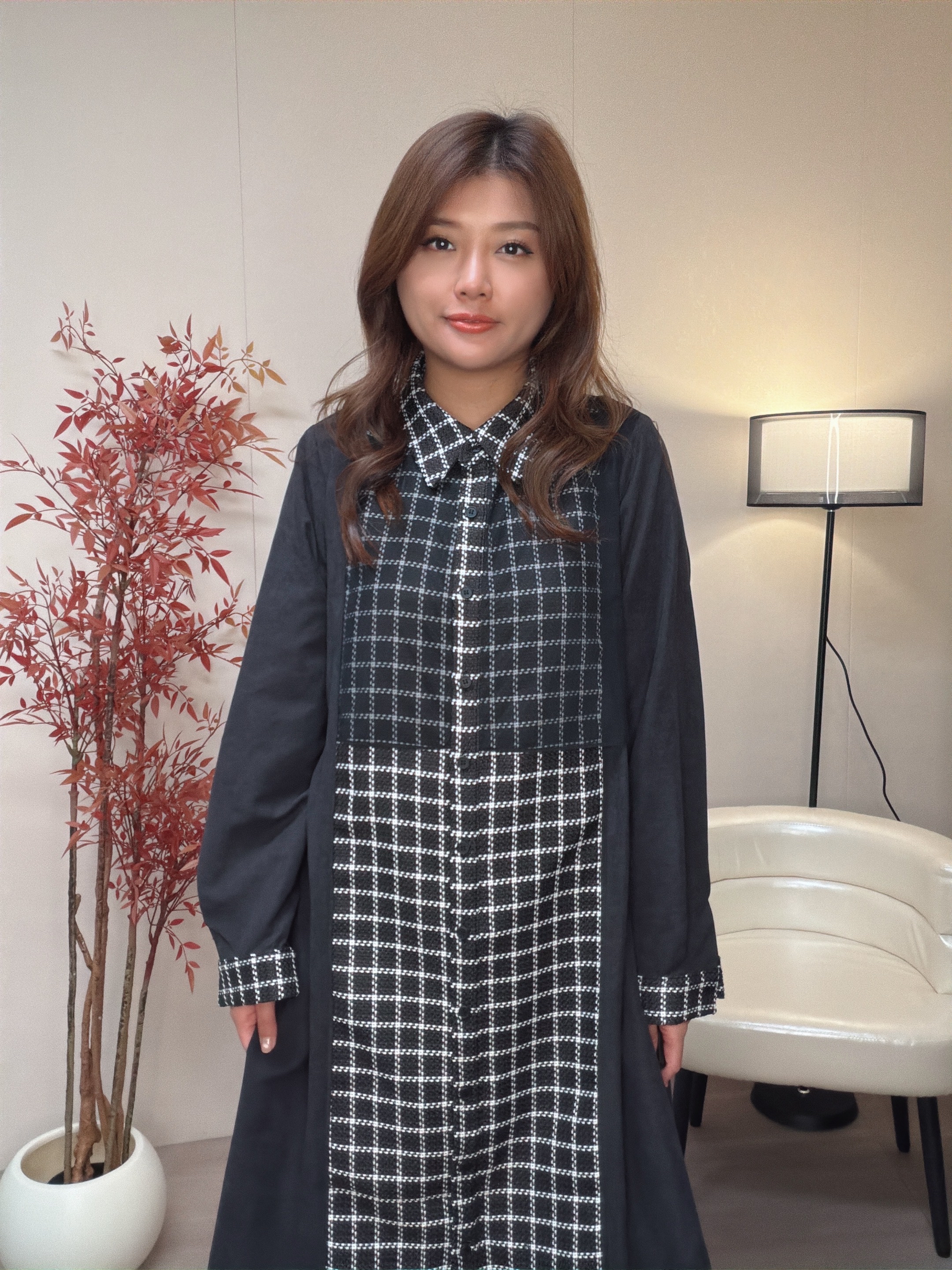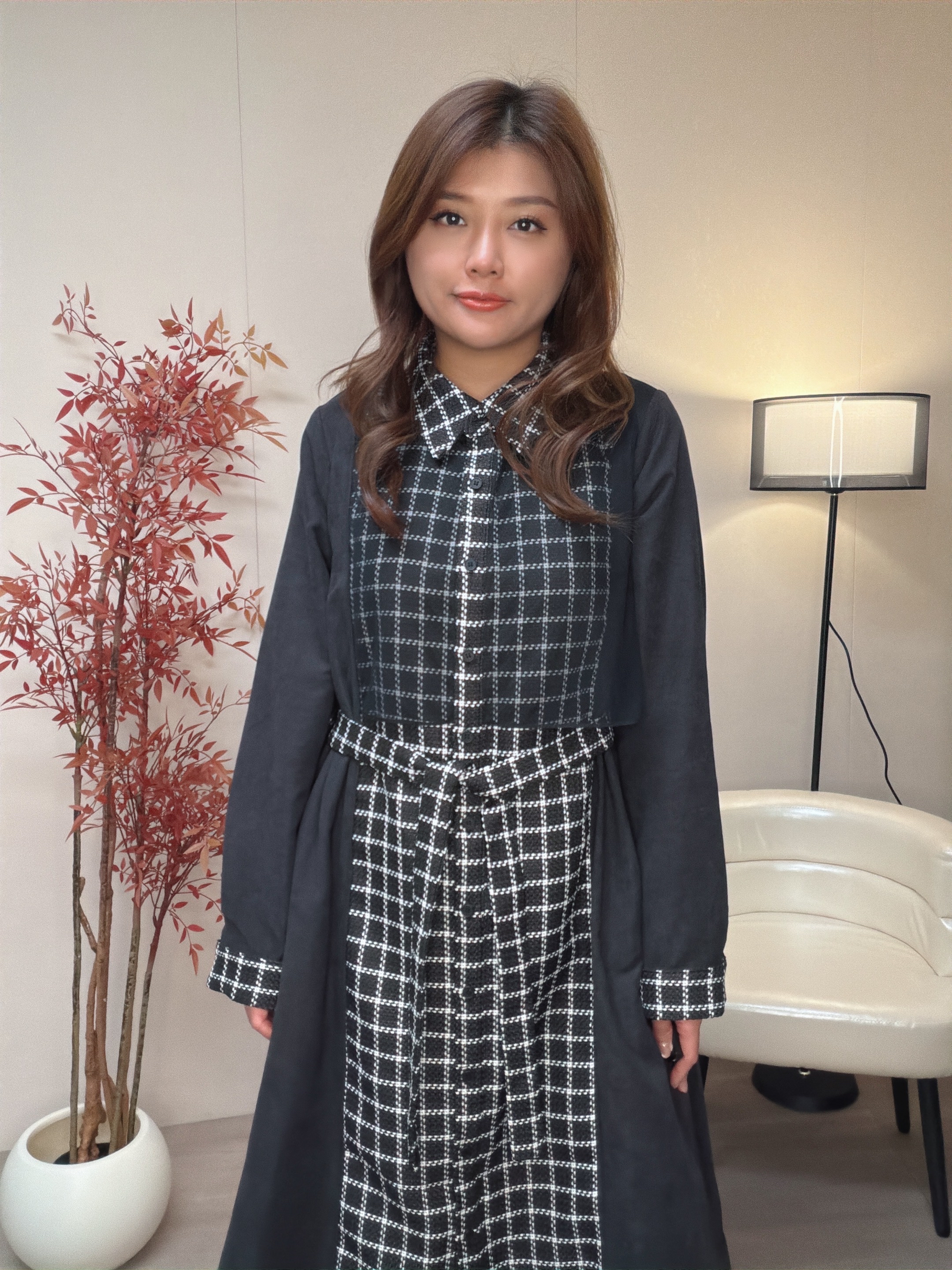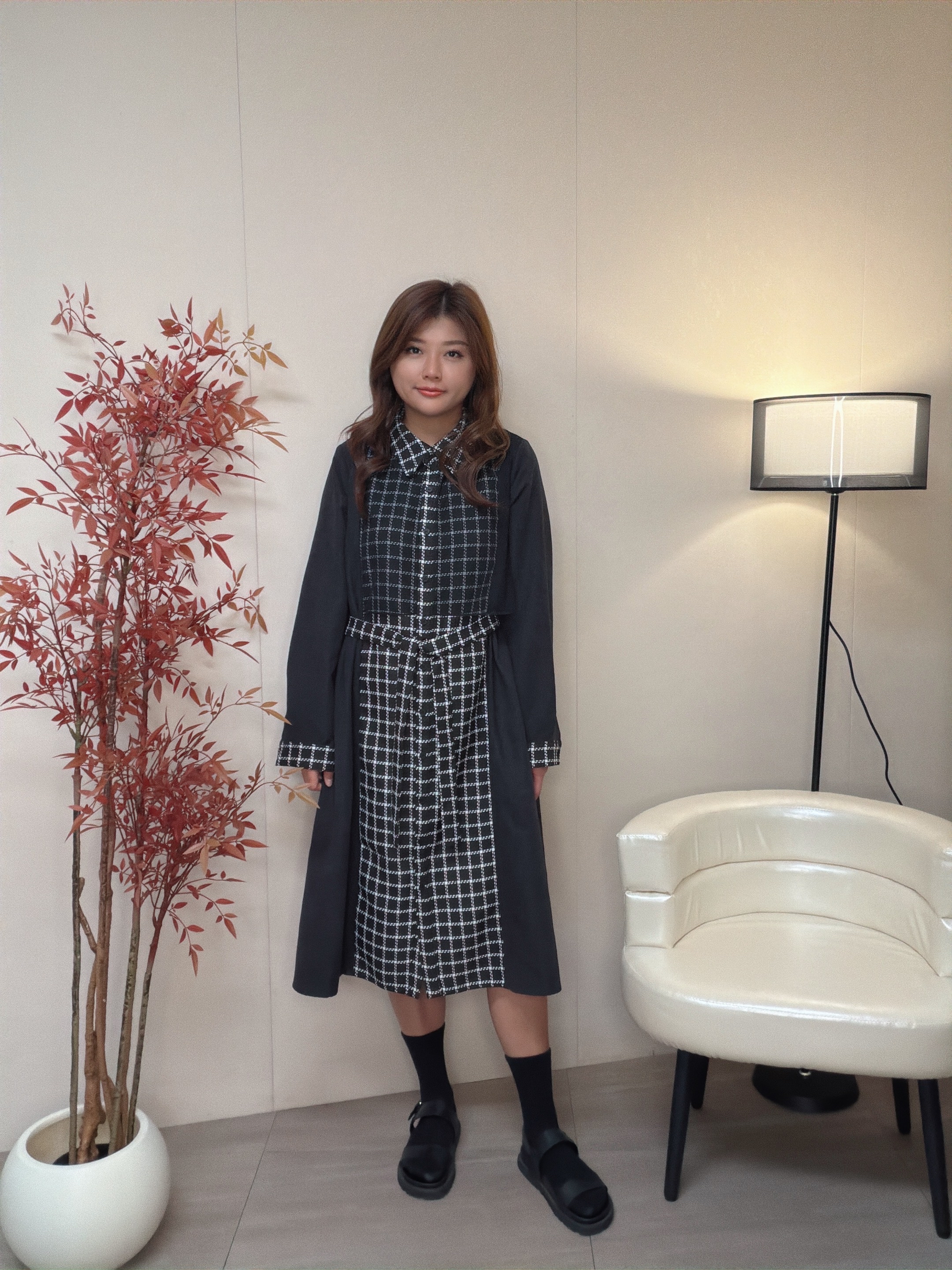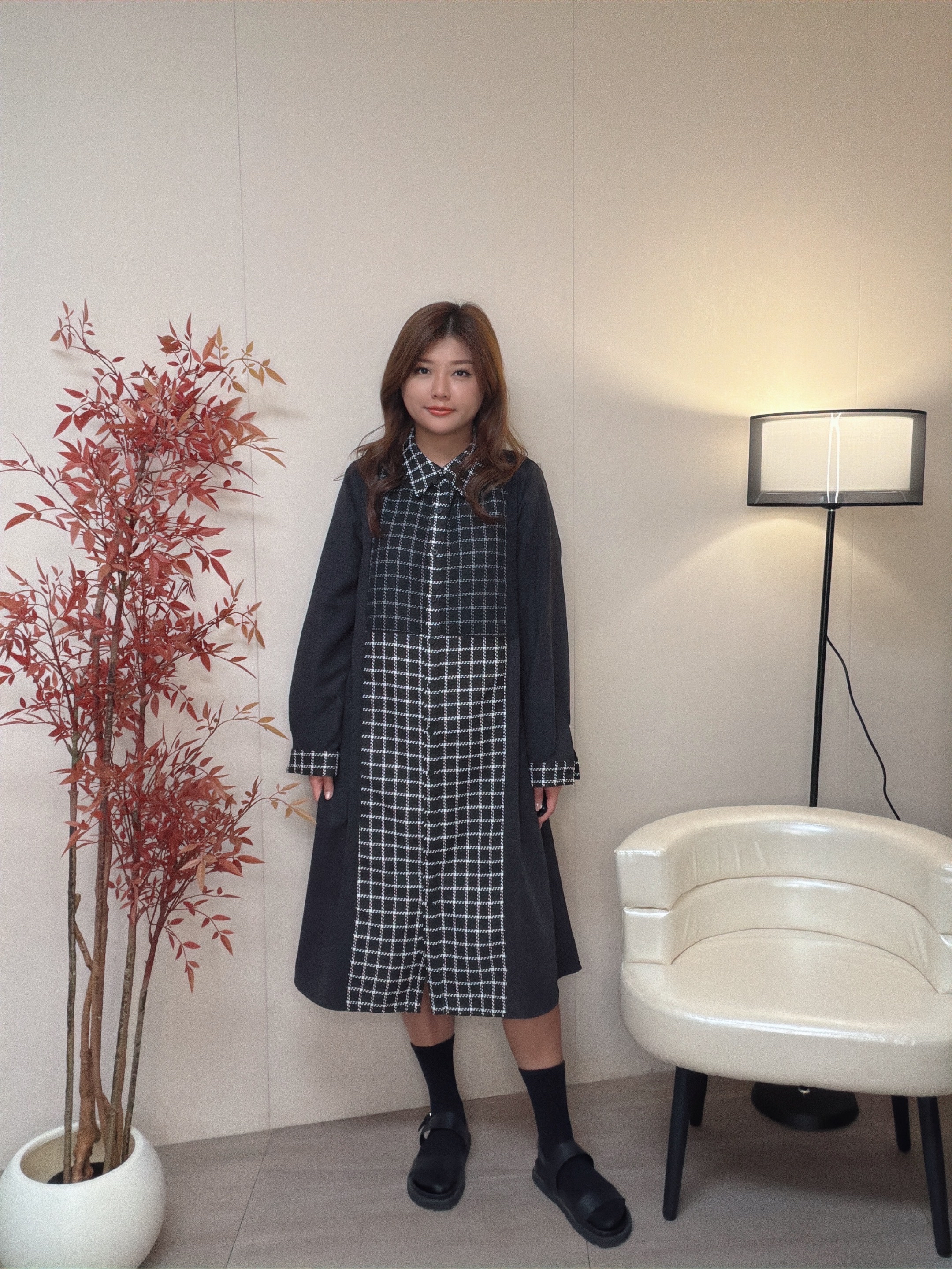 三種布料混合而成 兩則是磨毛絨布 中間是格紋小香風布料 上層加上雪紡布有助修飾胸部線條 Model身高:162cm Free size 胸42 腰46 hip 48 長 42 因每個人測量方式及位置略有不同,尺寸皆為水平手工測量,會因布料彈性、測量起點等因素,與實際商品尺寸略有誤差,誤差尺寸±2cm為國際驗貨標準可接受範圍。 商品在不同的燈光條件或螢幕顯示下,可能會出現顏色上的輕微差異。我們已努力在拍攝和編輯過程中呈現準確的顏色,但由於每個人的螢幕設定和顯示效果不同,實際顏色可能會有所變化。為了更準確地判斷顏色,我們建議參考我們提供的多角度照片。如您對色差有疑慮,請謹慎下單以確保符合您的期望。 付款前請先向客服查詢存貨 完成付款代表接受訂貨三星期及同意所述之退換貨政策。