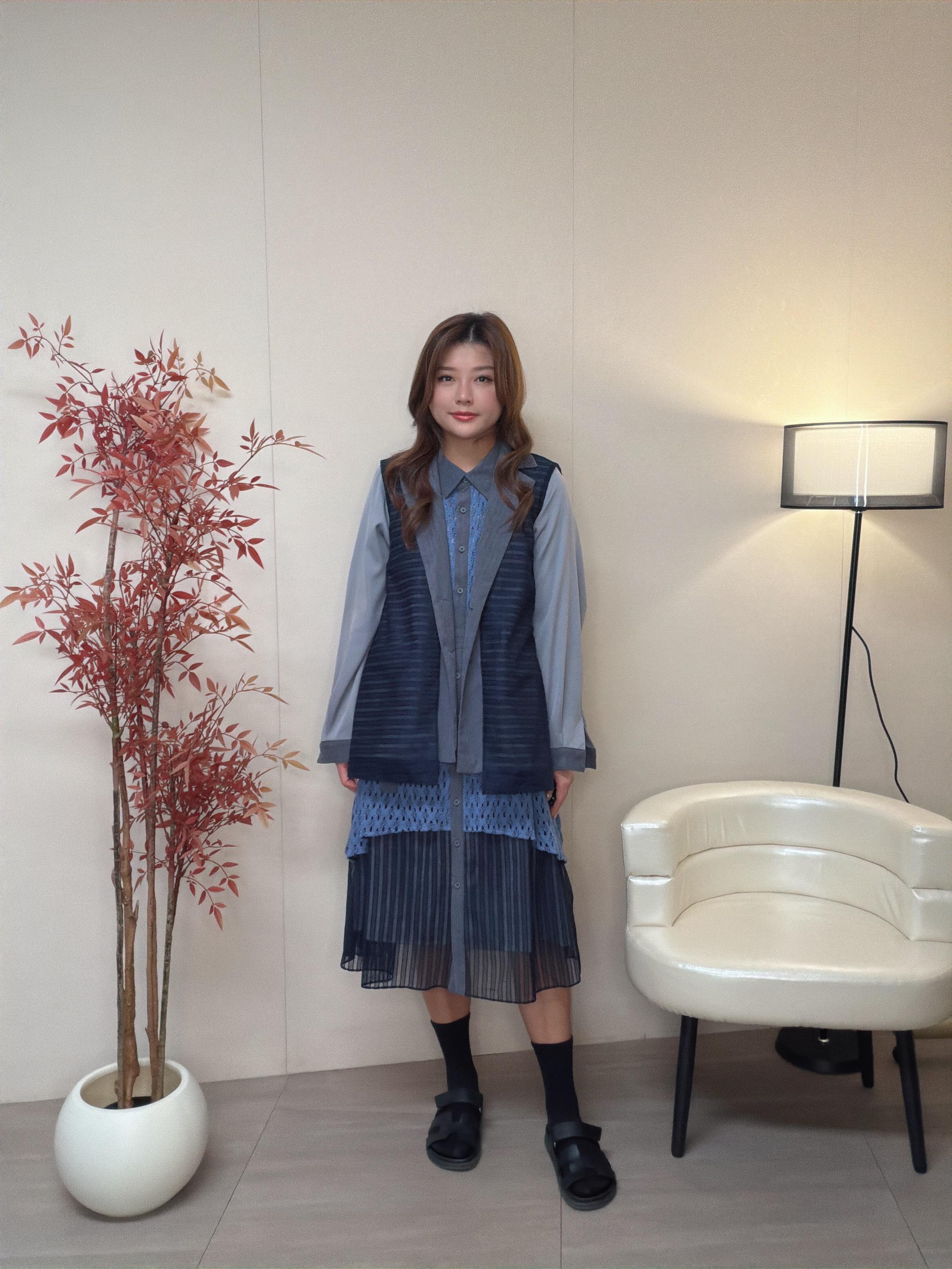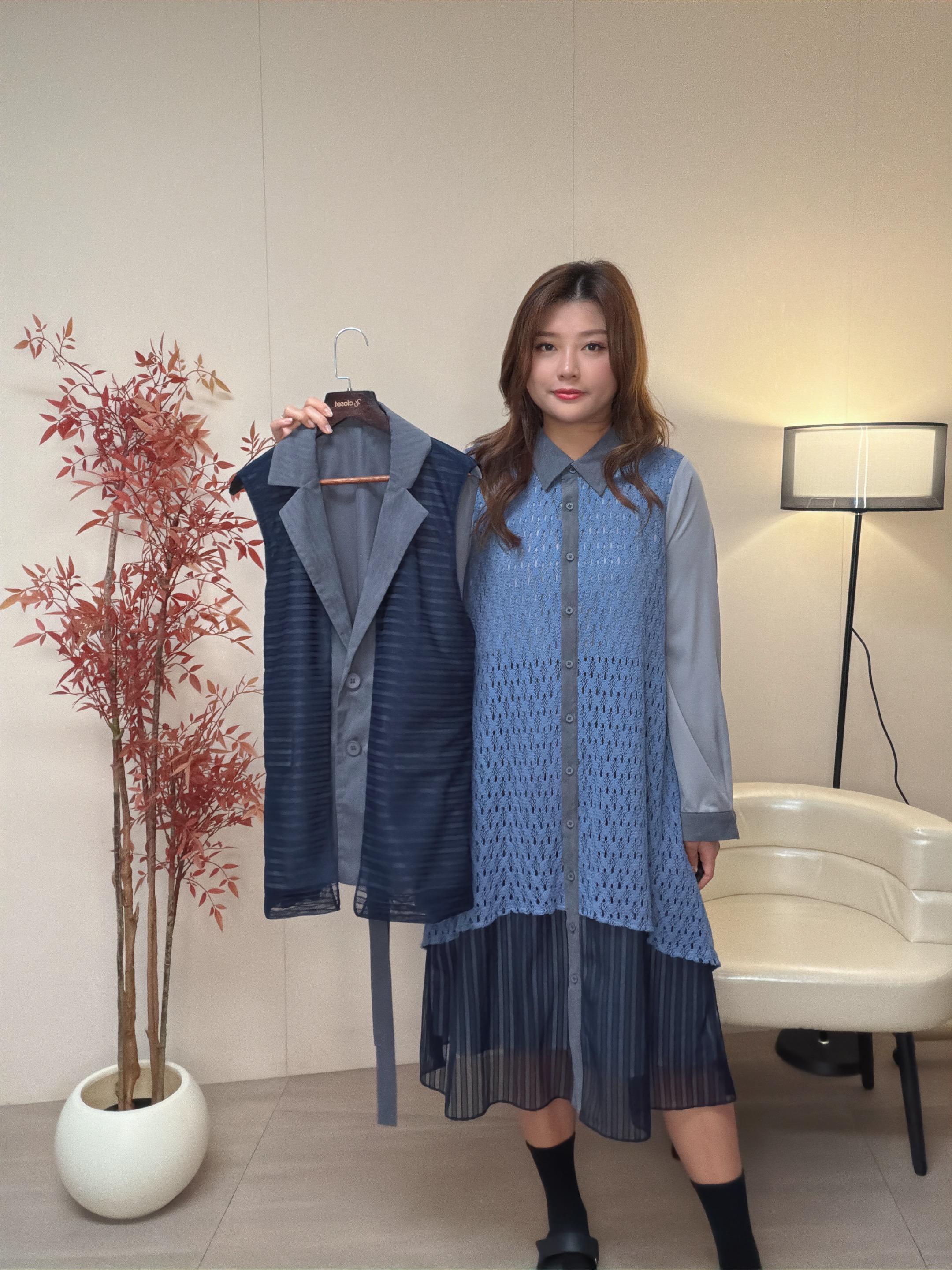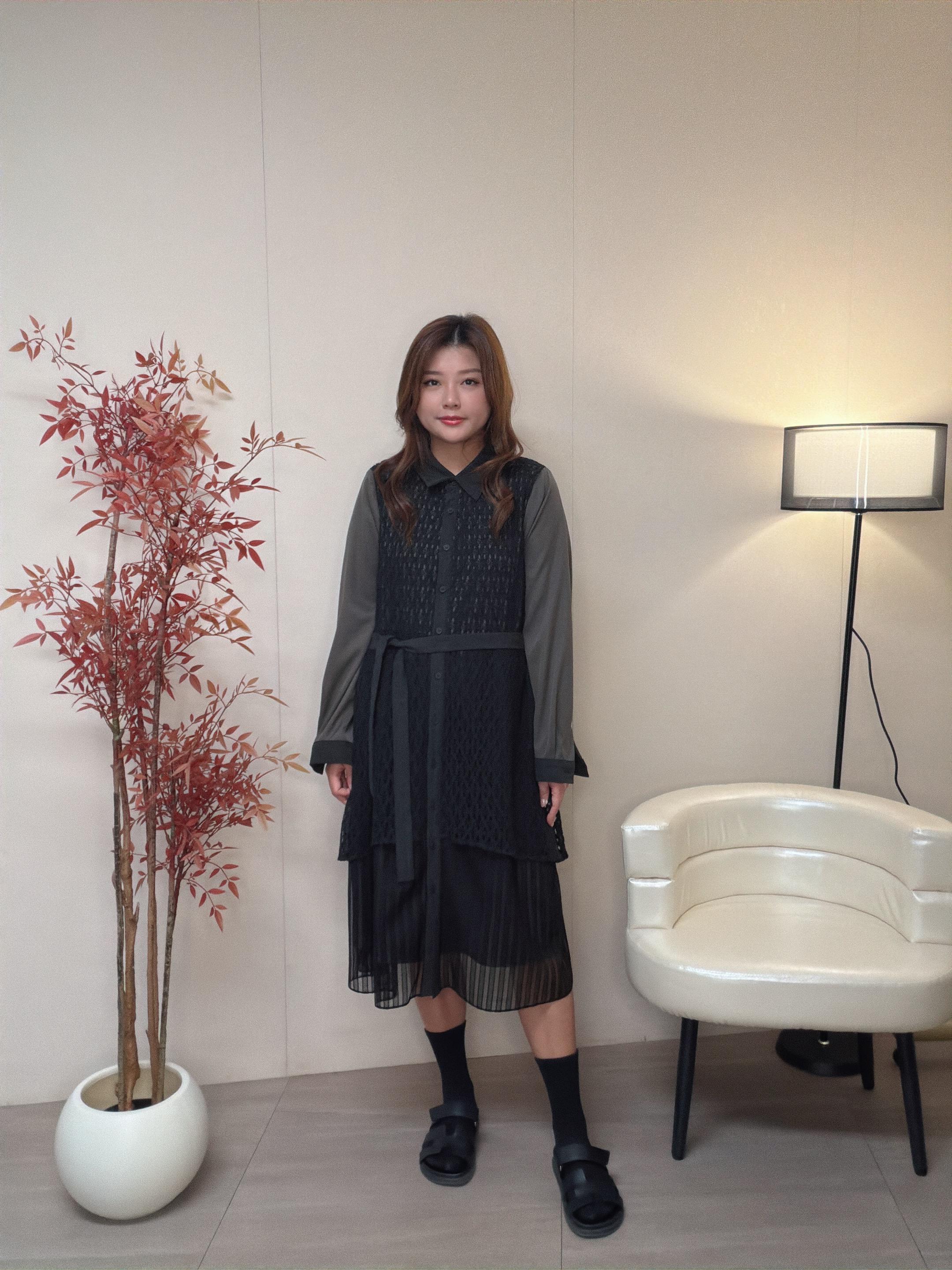 Model身高:162cm Free size 外套 胸41 衫長 28 內裙 胸42 腰44 hip 52 裙長43 真兩件設計 內裙運用三種不同布料 面層是網花針織布 中層是條子網布 里是磨毛薄身絨布 背心外套 是兩種布料呼應返內裙設計 面是條子網布 內線磨毛薄身絨布 因每個人測量方式及位置略有不同,尺寸皆為水平手工測量,會因布料彈性、測量起點等因素,與實際商品尺寸略有誤差,誤差尺寸±2cm為國際驗貨標準可接受範圍。 商品在不同的燈光條件或螢幕顯示下,可能會出現顏色上的輕微差異。我們已努力在拍攝和編輯過程中呈現準確的顏色,但由於每個人的螢幕設定和顯示效果不同,實際顏色可能會有所變化。 為了更準確地判斷顏色,我們建議參考我們提供的多角度照片。如您對色差有疑慮,請謹慎下單以確保符合您的期望。 付款前請先向客服查詢存貨 完成付款代表接受訂貨三星期及同意所述之退換貨政策。