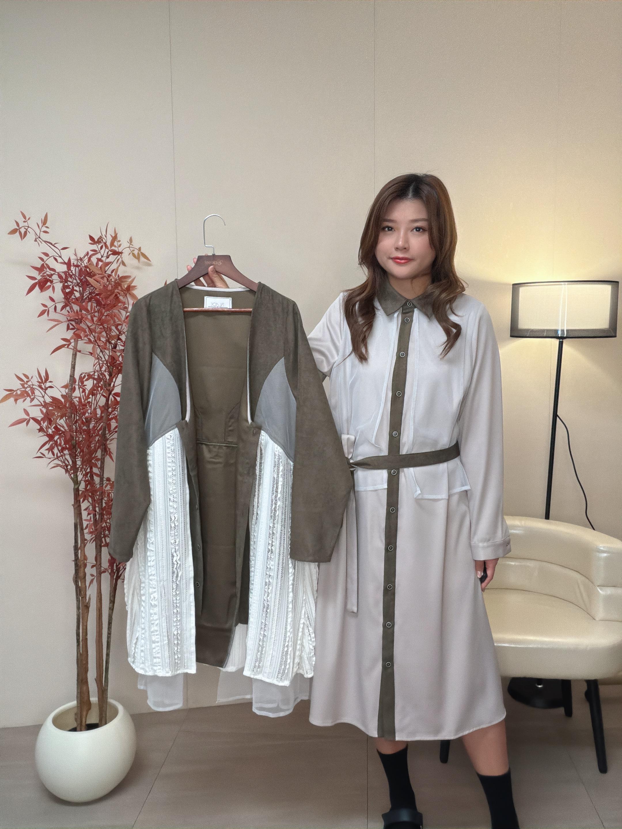 Model身高:162cm Free size 外套 胸42 腰 43 衫長 39 內裙 胸 41 腰 44 hip 50 長43 這款是真兩件套 外套重工設計 主布是磨毛絨布 兩側運用咗提花立體喱士及網布營造顯瘦效果 。 內裙 是用了兩種布料 面是撞色網布 下身是磨毛薄絨布與外套作呼應。 因每個人測量方式及位置略有不同,尺寸皆為水平手工測量,會因布料彈性、測量起點等因素,與實際商品尺寸略有誤差,誤差尺寸±2cm為國際驗貨標準可接受範圍。 商品在不同的燈光條件或螢幕顯示下,可能會出現顏色上的輕微差異。我們已努力在拍攝和編輯過程中呈現準確的顏色,但由於每個人的螢幕設定和顯示效果不同,實際顏色可能會有所變化。 為了更準確地判斷顏色,我們建議參考我們提供的多角度照片。如您對色差有疑慮,請謹慎下單以確保符合您的期望。 付款前請先向客服查詢存貨 完成付款代表接受訂貨三星期及同意所述之退換貨政策。