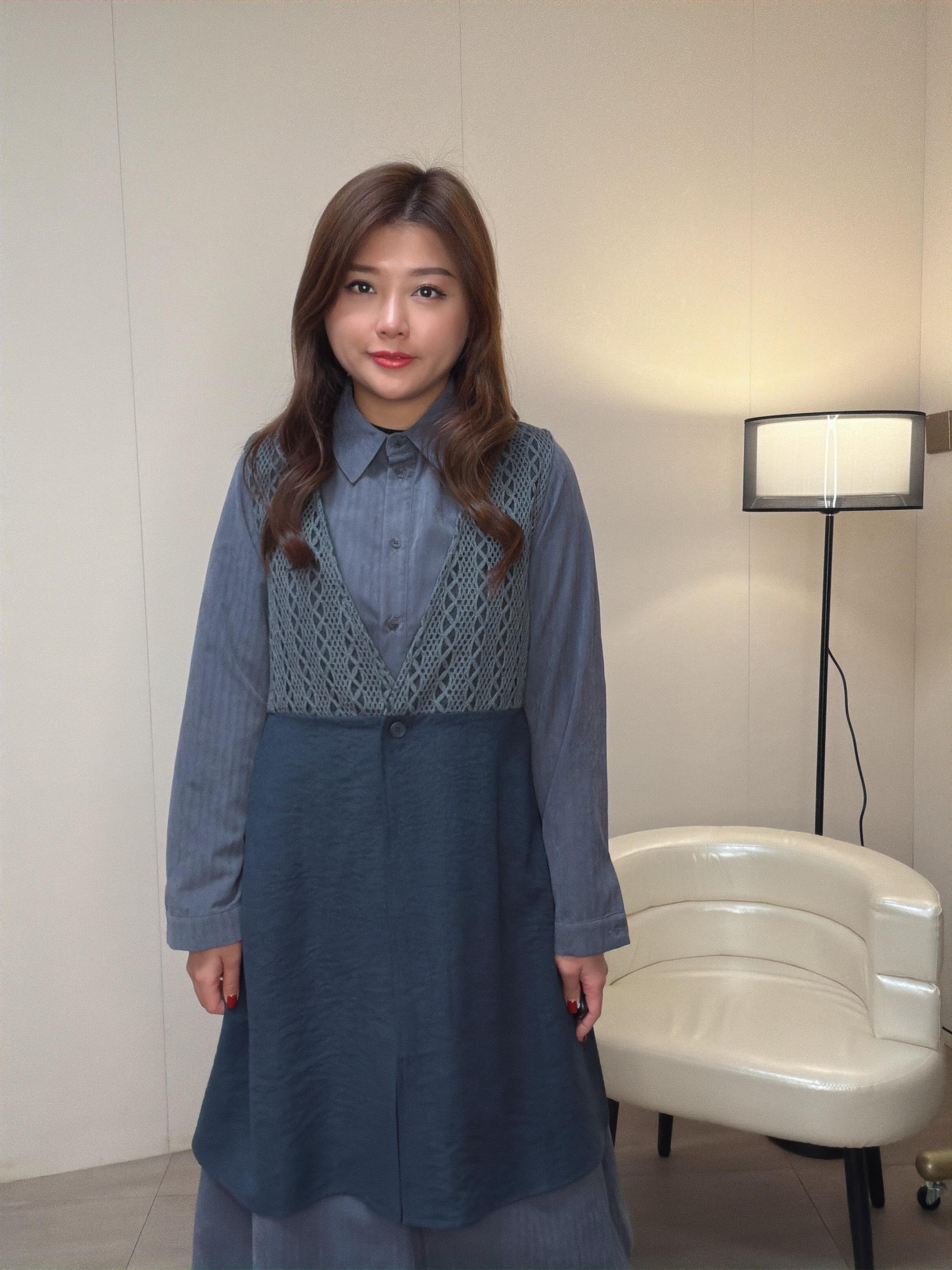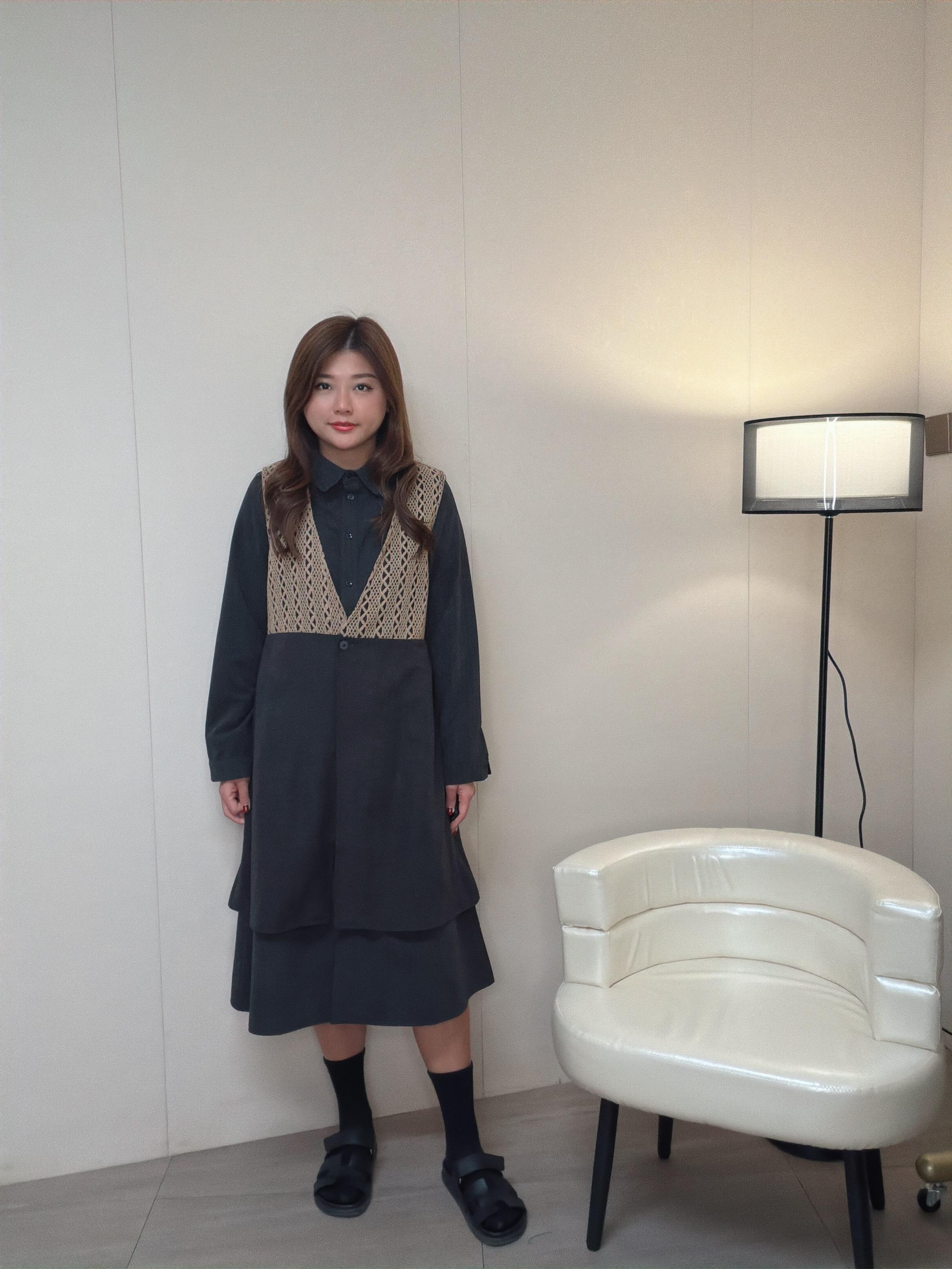 這款是真兩件套 背心外套是菱格花冷拼洗水磨毛料 內裙是暗條子薄絨布