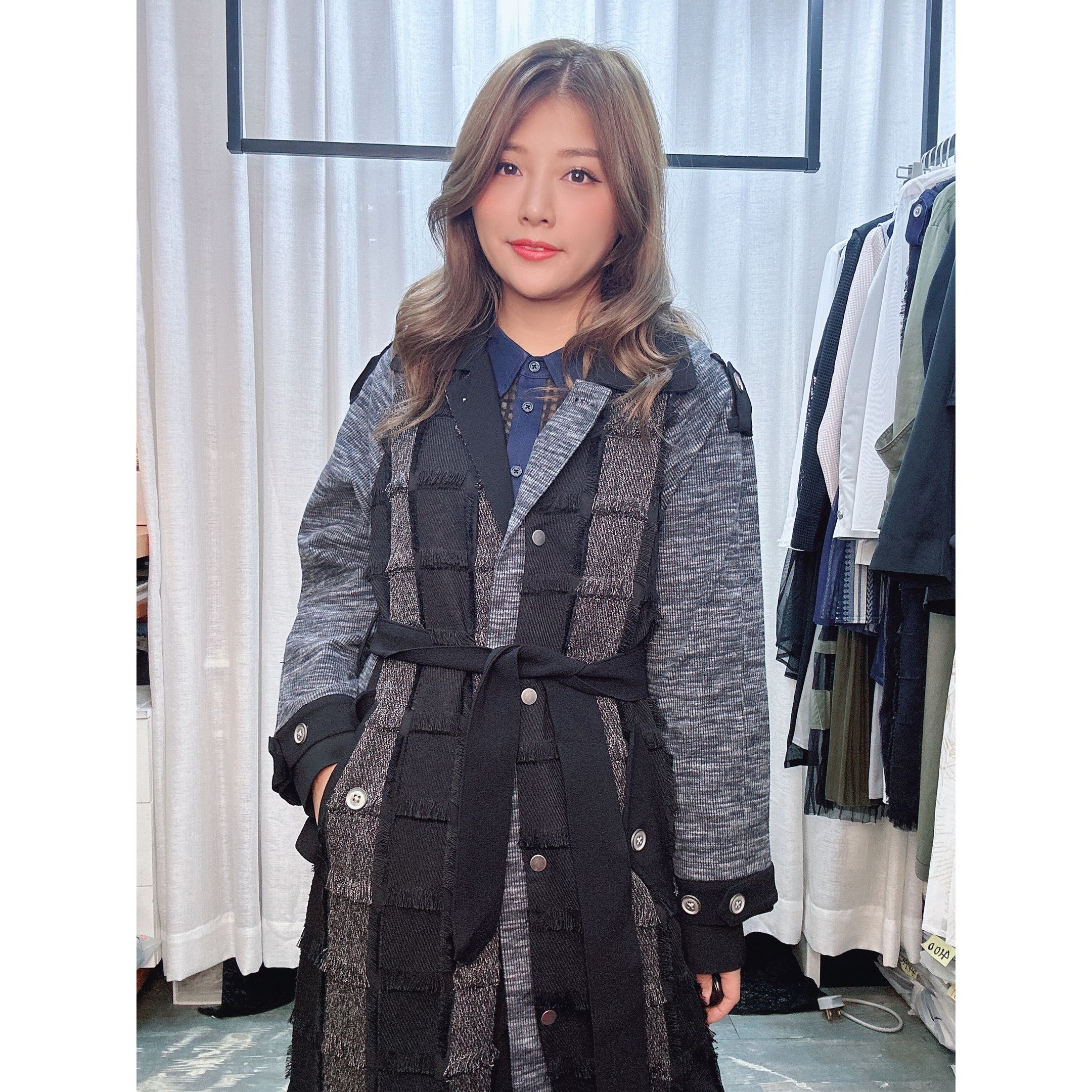 L暗格仔流蘇薄絨外套