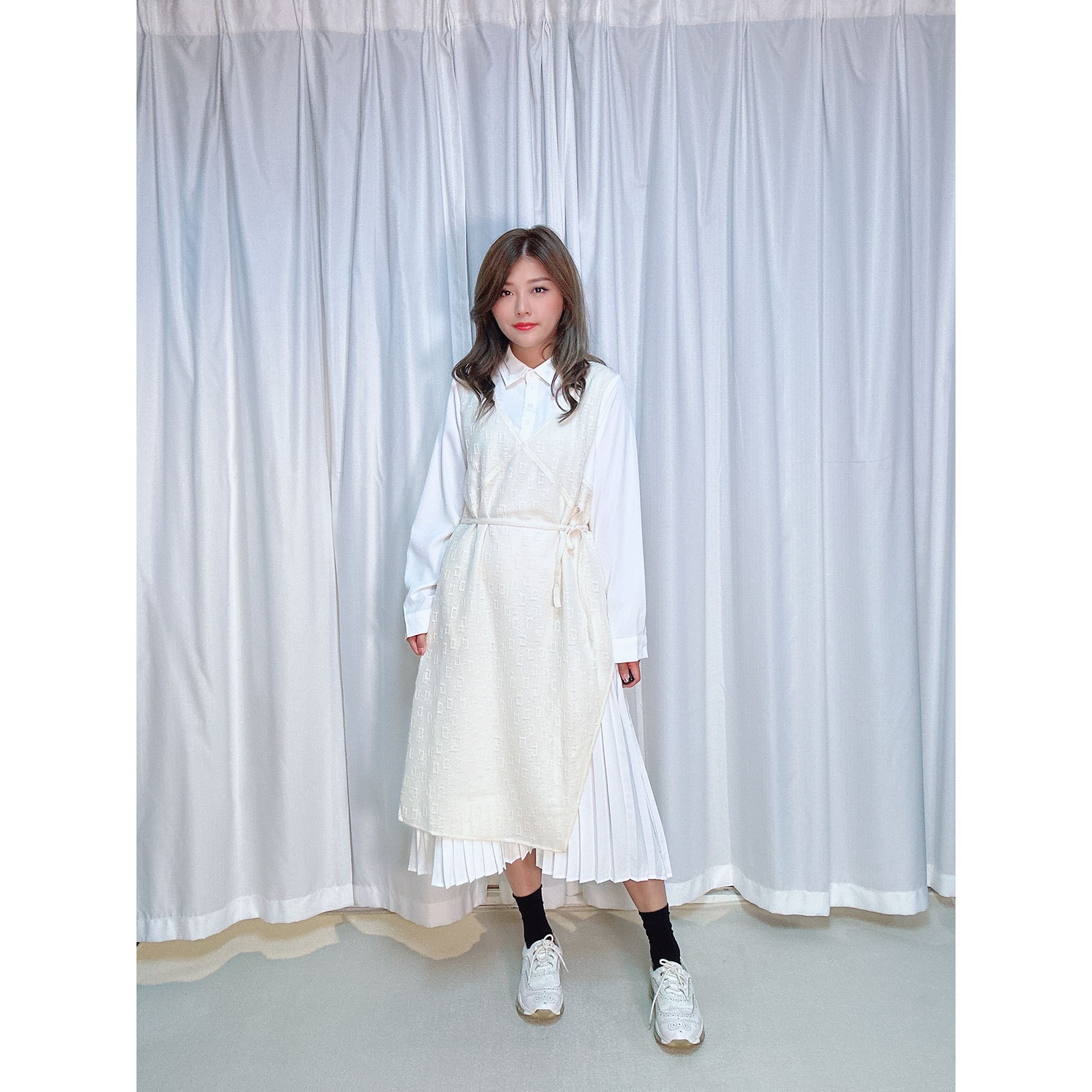 102637BM2186 獨家款 拼色一邊壓摺連身裙 極顯瘦!